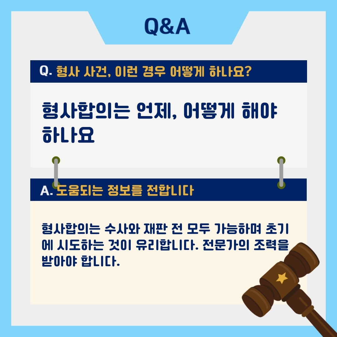 형사합의는 감정이 얽힌 민감한 절차이므로 전문가의 조언 없이 진행할 경우 오히려 갈등이 심화될 수 있습니다. 형사전문 변호사는 중립적이며 법률적으로 유효한 합의를 이끌어낼 수 있도록 조율하며, 필요한 서류 준비와 법적 절차 진행을 도와줍니다. 특히 피해자나 그 가족과의 접촉이 어려울 경우, 공식적으로 연락을 취할 수 있도록 지원하는 것도 변호사의 중요한 역할 중 하나입니다.