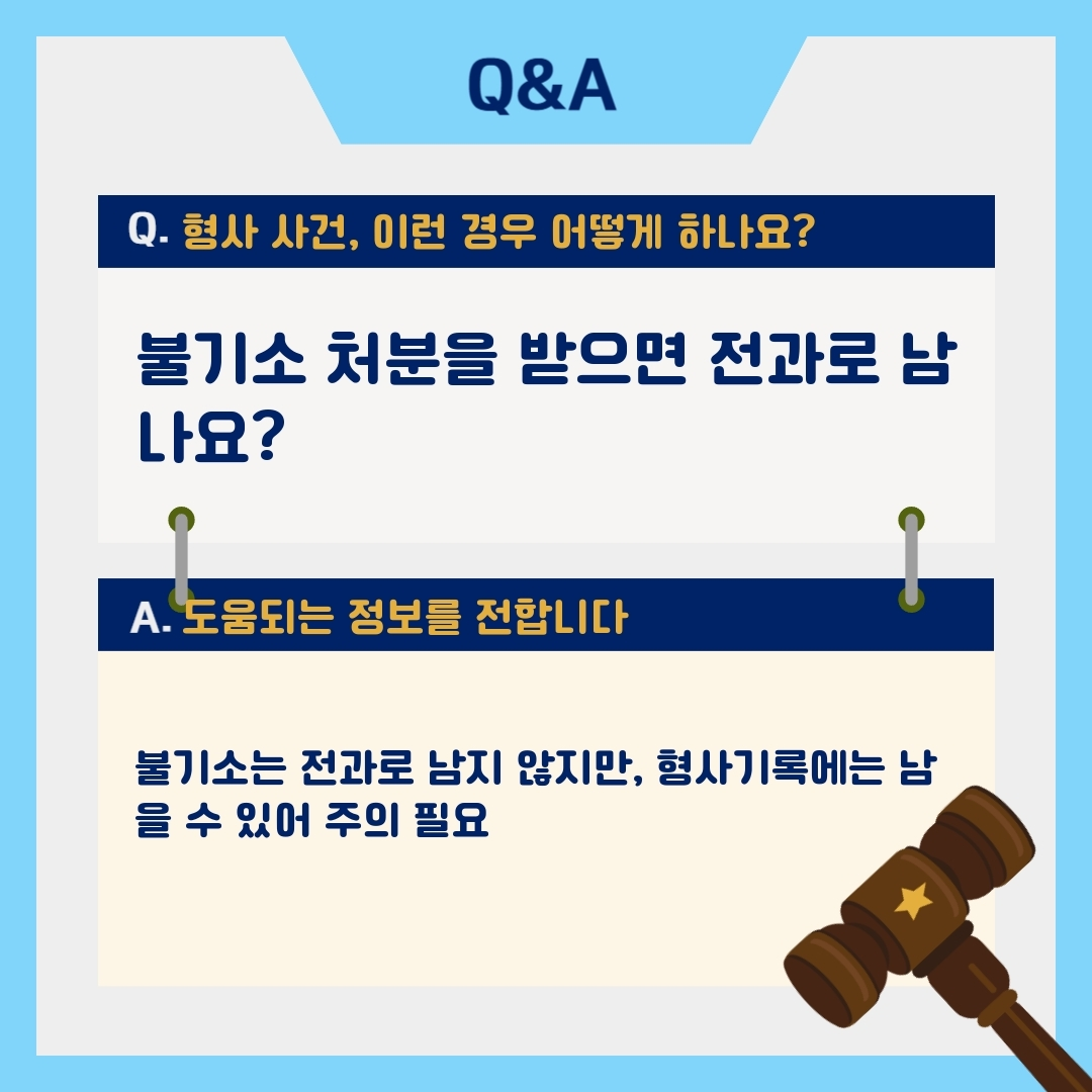 많은 분들이 수사기관에 조사를 받거나 고소를 당한 경험이 있을 때, 결국 검사의 불기소 처분을 받으면 모든 문제가 끝났다고 생각하지만, 전과 기록과는 또 다른 문제라는 점에서 주의를 요합니다.
