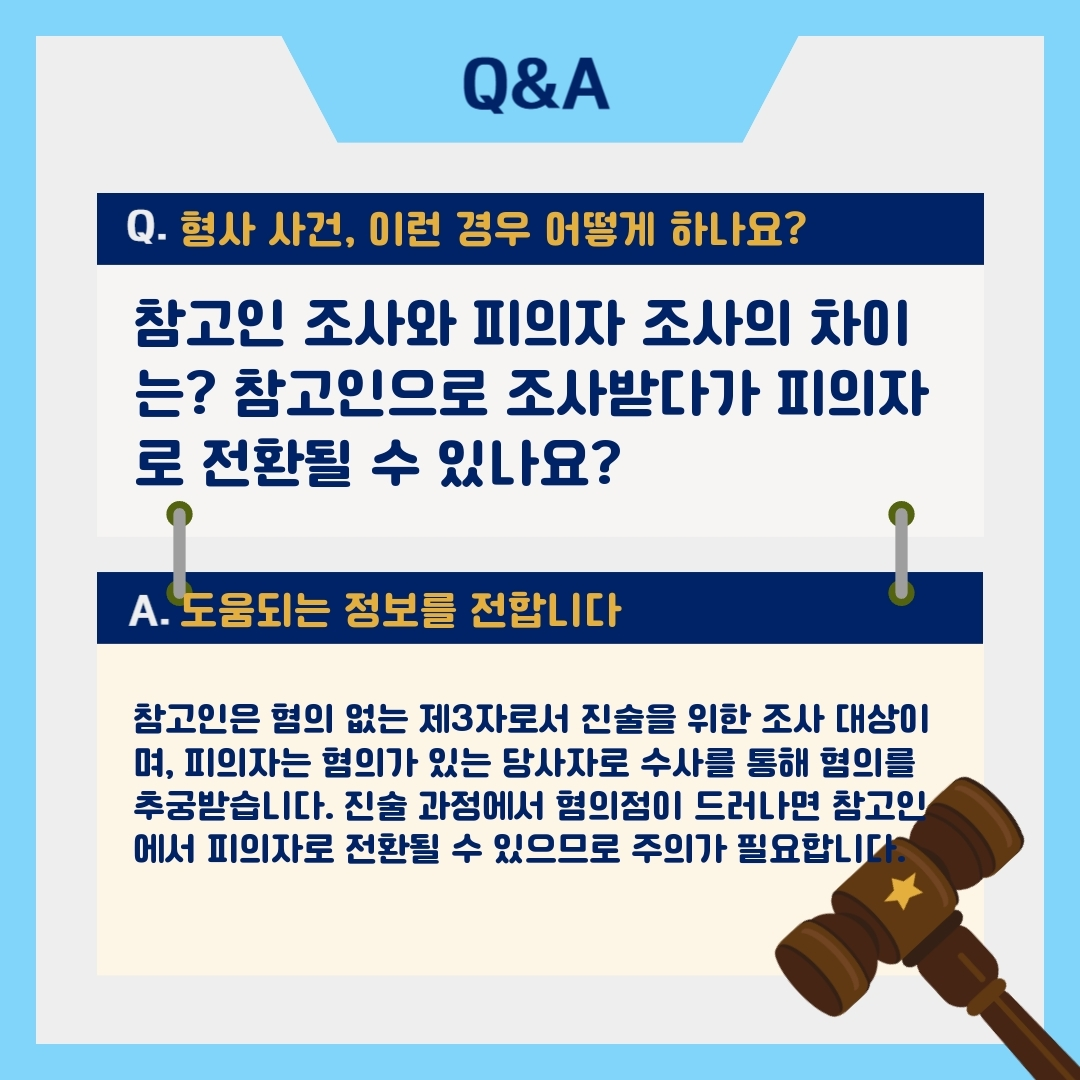가장 중요한 질문, 참고인에서 피의자로 전환될 수 있나요?